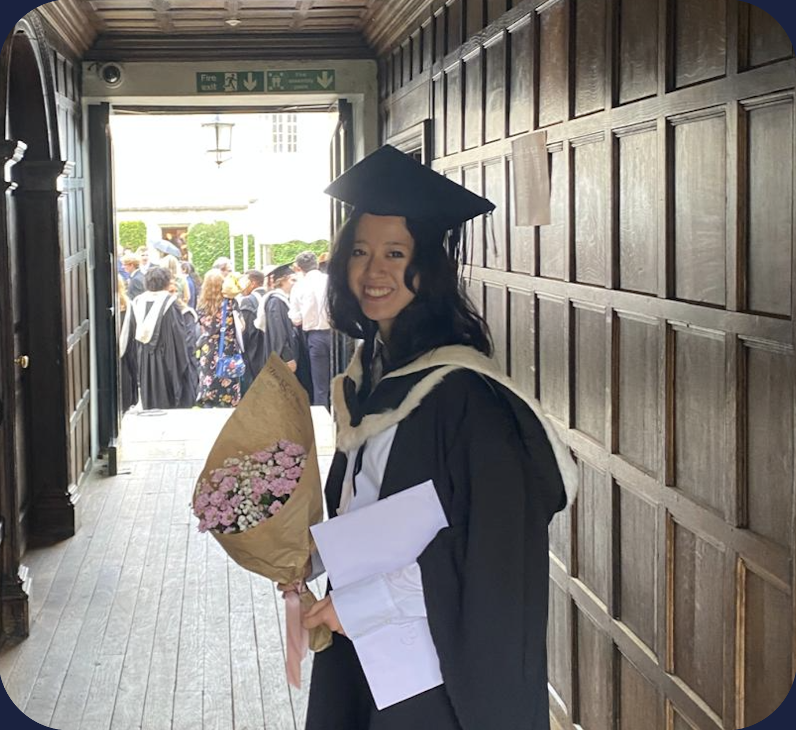 Esther is a recipient of the J T Christie Prize (2024) and the C. E. Stevens and Charles Oldham Travelling Scholarship in Classical Studies (2025). She is also a coxswain and bass player.